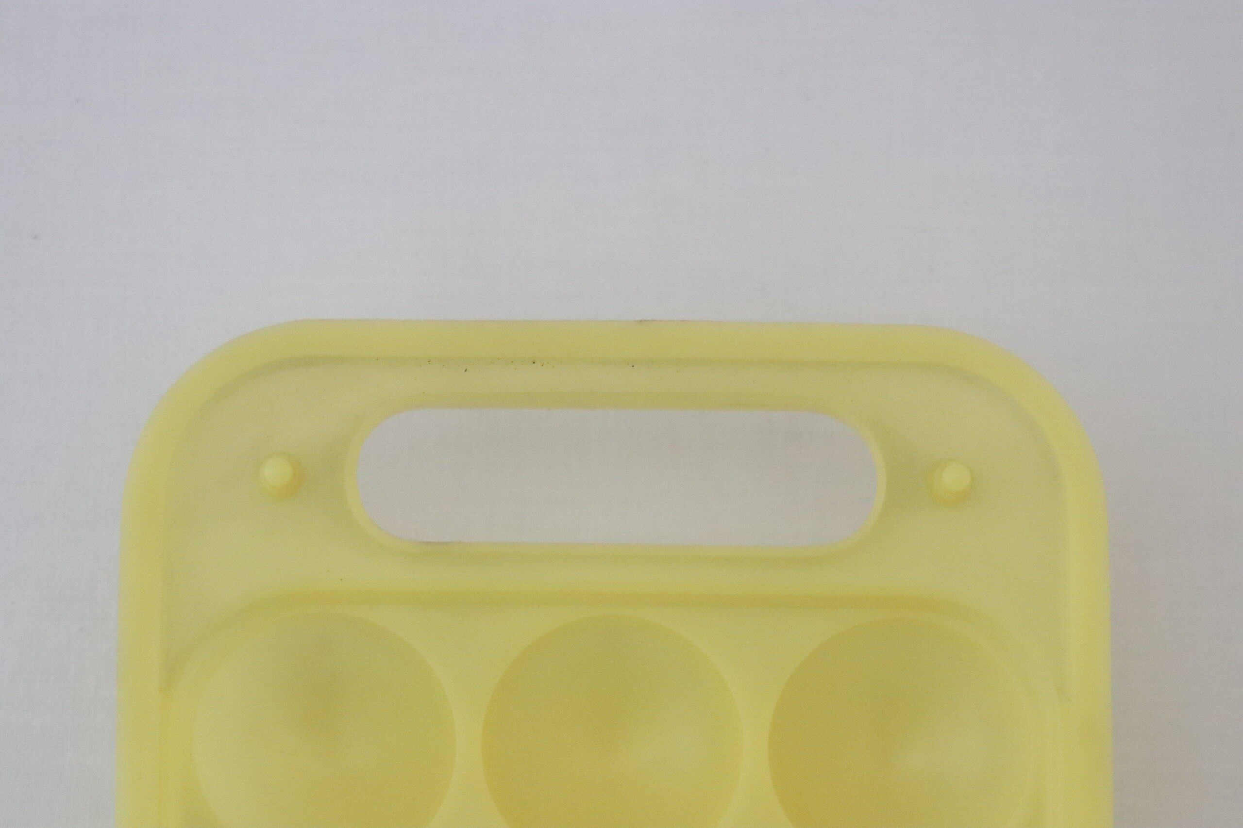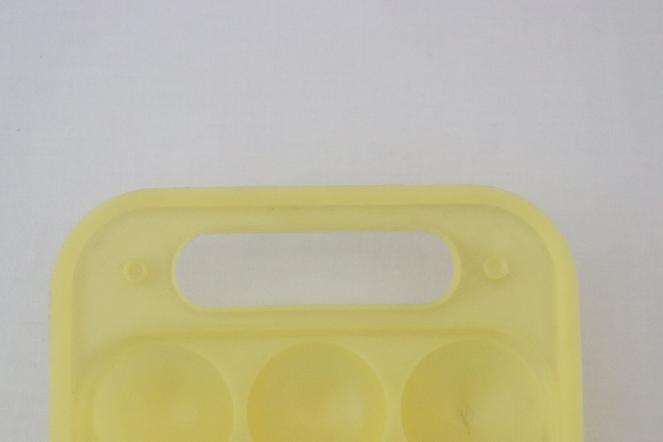 Cette boîte à œufs est en plastique de couleur jaune pâle, la anse est large et est munie d’un fermoir intégré. Elle peut contenir 6 œufs de calibre moyen.